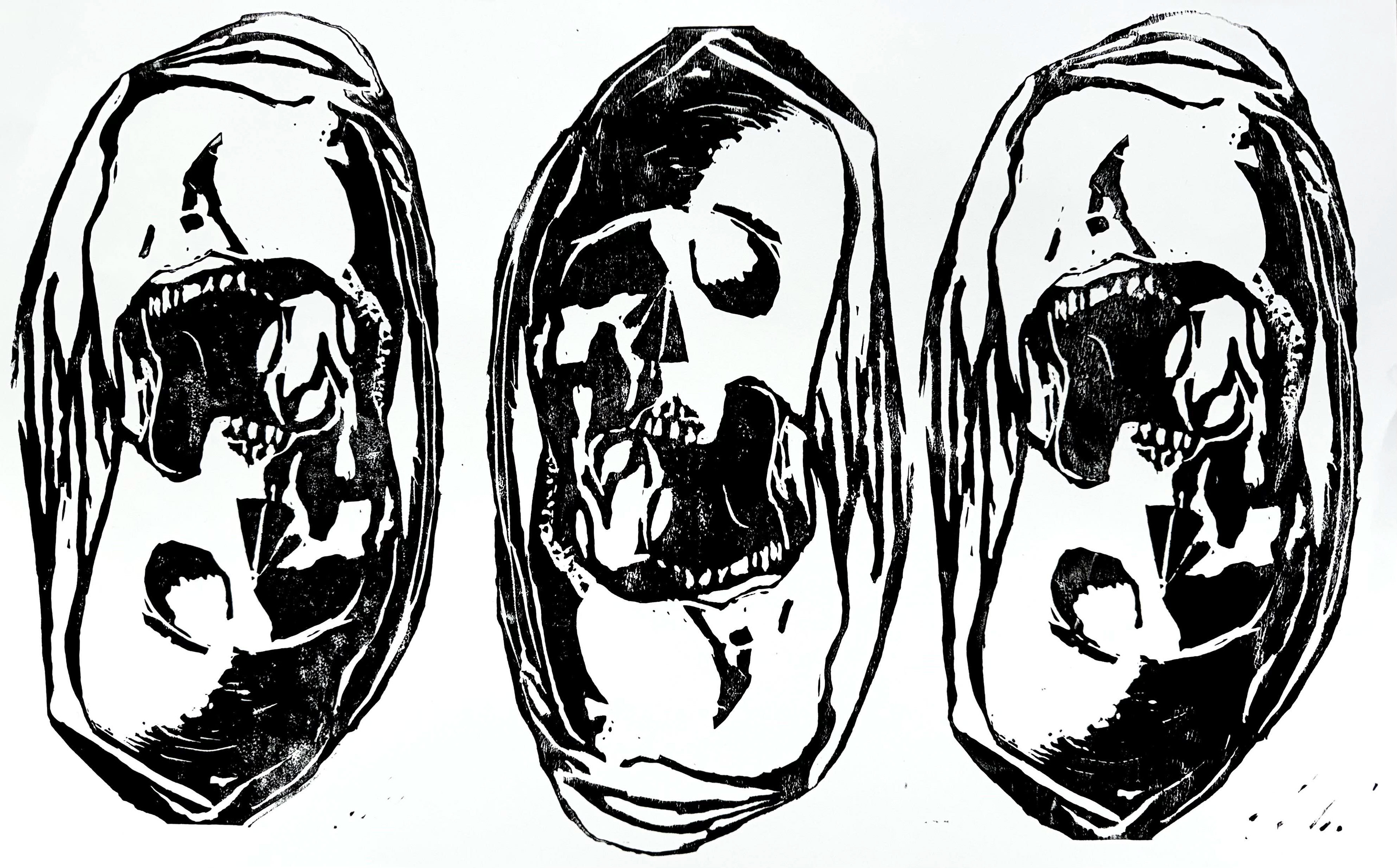"Transfiguratio Mortis" to experiment with printmaking for the first time in my studio art class.